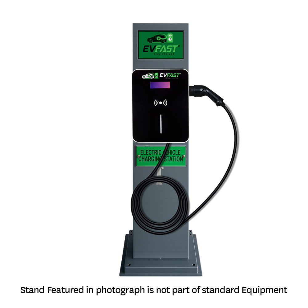 EVFAST is where refined design meets intelligent performance. This elegant 22kW wall-mounted EV charger enhances your space while delivering a seamless charging experience. A built-in emergency stop switch and RCD ensures safety under unforeseen circumstances.